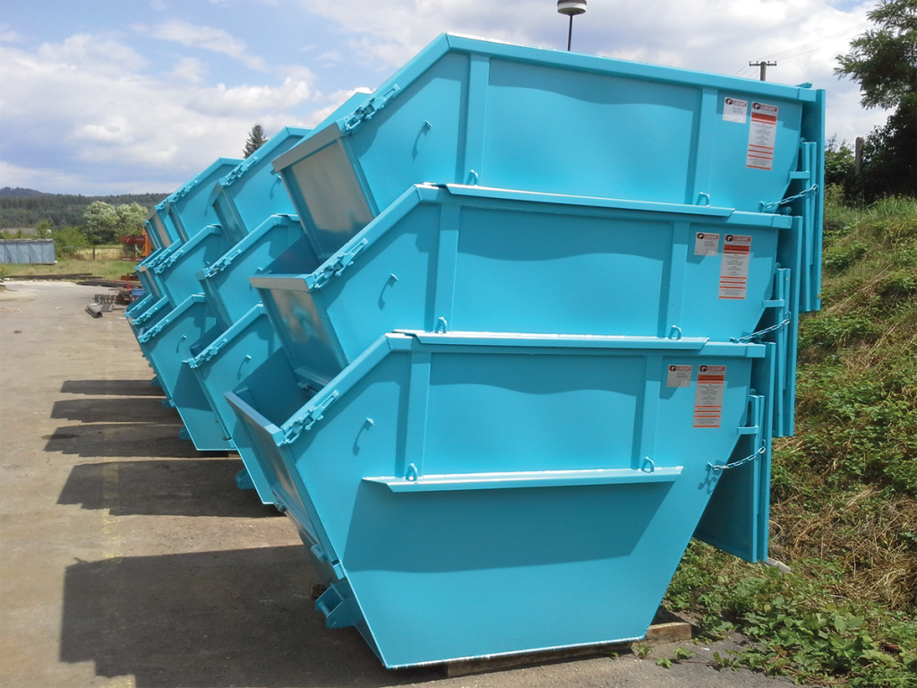 Hrúbka stien a podlahy kontajnera je konštruovaná podľa typu odpadového materiálu. Na stranách kontajnera sa nachádzajú kotevné čapy, ktoré slúžia na manipuláciu a zaistenie kontajnera pri doprave. Kontajner je stohovateľný a vyrábame ho v rôznych variantoch podľa účelu použitia – symetrický, asymetrický, s krytom, bez krytu či s klapkou. Povrch vieme ošetriť syntetickým alebo polyuretánovým náterom.