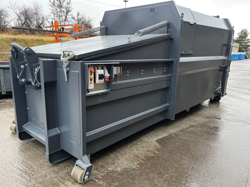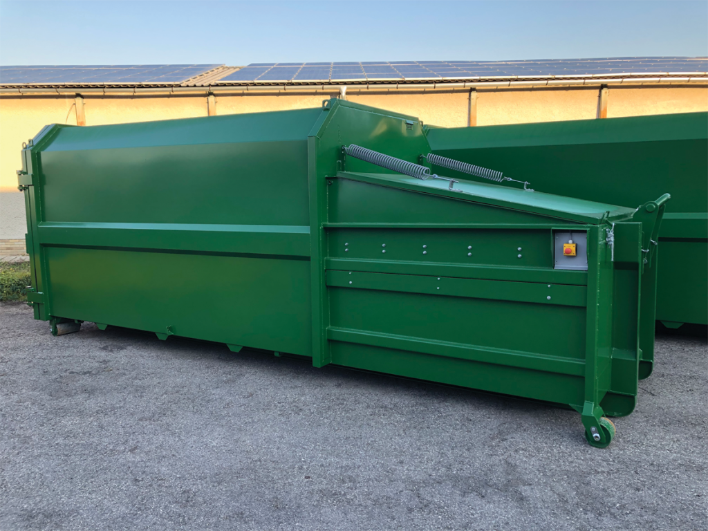 Kontajner s lisovacou jednotkou určený pre lisovanie veľkého objemu odpadu, ktorý je neekonomické prepravovať nestlačený. Vhodný na kartónový odpad, fóliu, komunálny odpad a iný stlačiteľný odpad v prevádzkach, ktoré denne vyprodukujú stovky kilogramov odpadu.